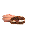 Шоколадні, бісквітні половинки печива переплітаються з кремом на основі вершкового сиру з додаванням малинової начинки, що надає свіжості та фруктової нотки
