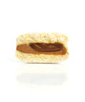 Мигдалеві кришечки в поєднанні з ганашем на молочному шоколаді в центрі якого знаходиться начинка з неймовірно насиченою шоколадно-горіховою пастою.